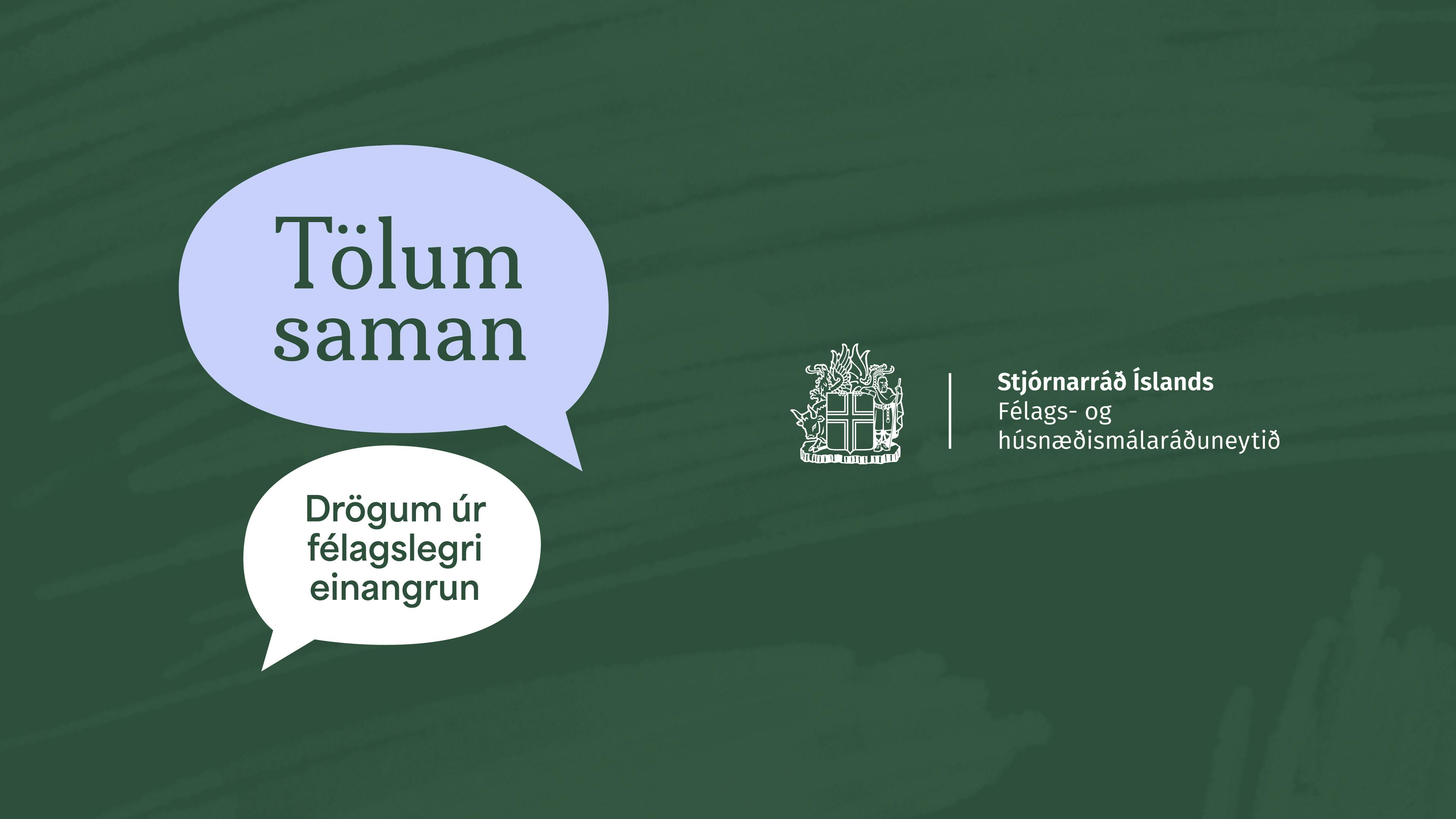 Tölum saman er vitundarvakning um félagslega einangrun og einmanaleika. Mikilvægt er að vekja athygli á því hve alvarleg félagsleg einangrun er og hvernig við getum öllum verið hluti af lausninni.