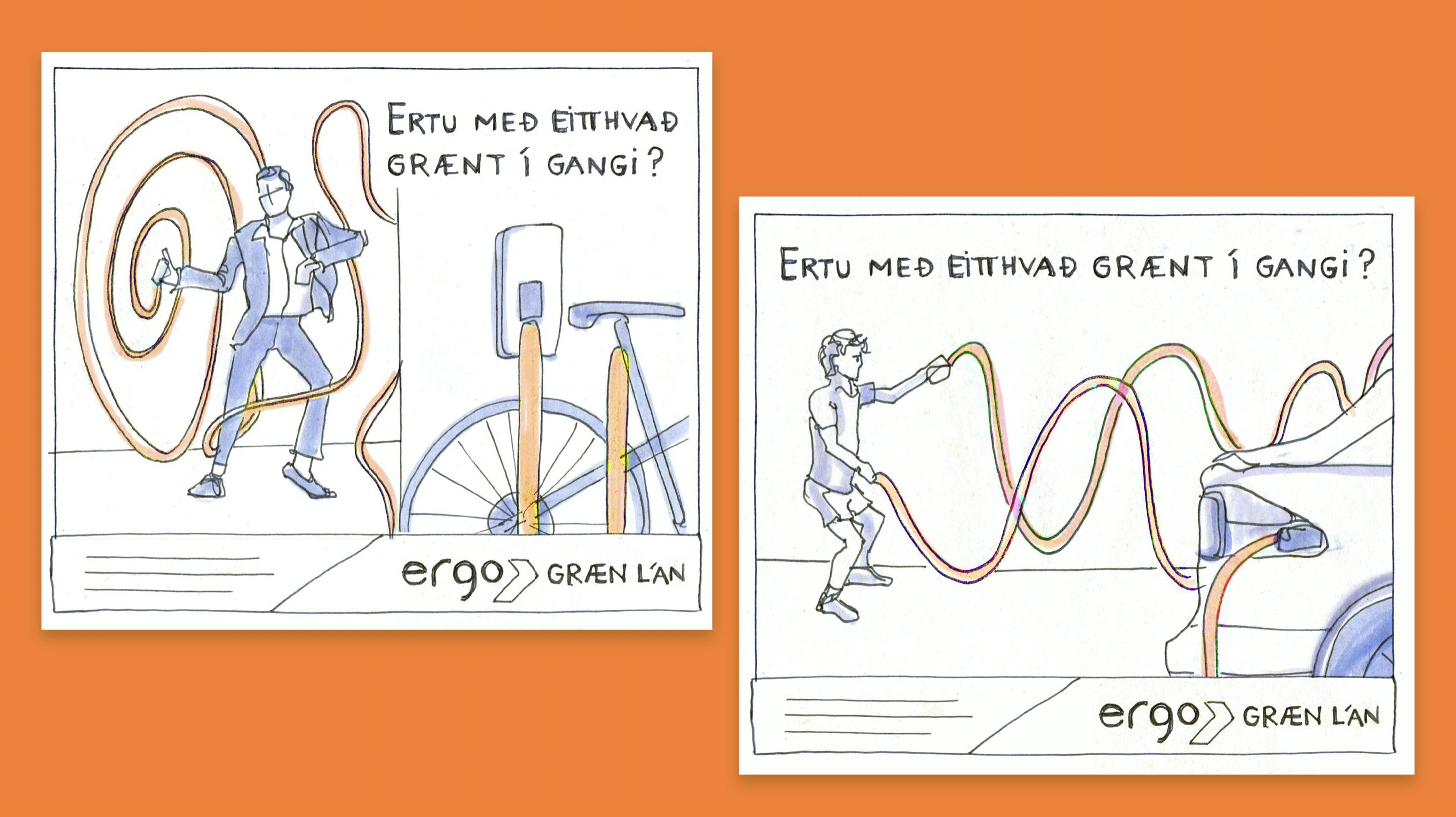 Ein mestu viðbrigðin við að skipta yfir í rafbíl er að stinga bílnum einfaldlega í samband til að hlaða og losna þannig við dælurbyssurnar á missnyrtilegum bensínstöðvum. Hleðslukaplarnir eru oft skemmtilega litríkir og fengu að njóta sín í herferð Ergo.
