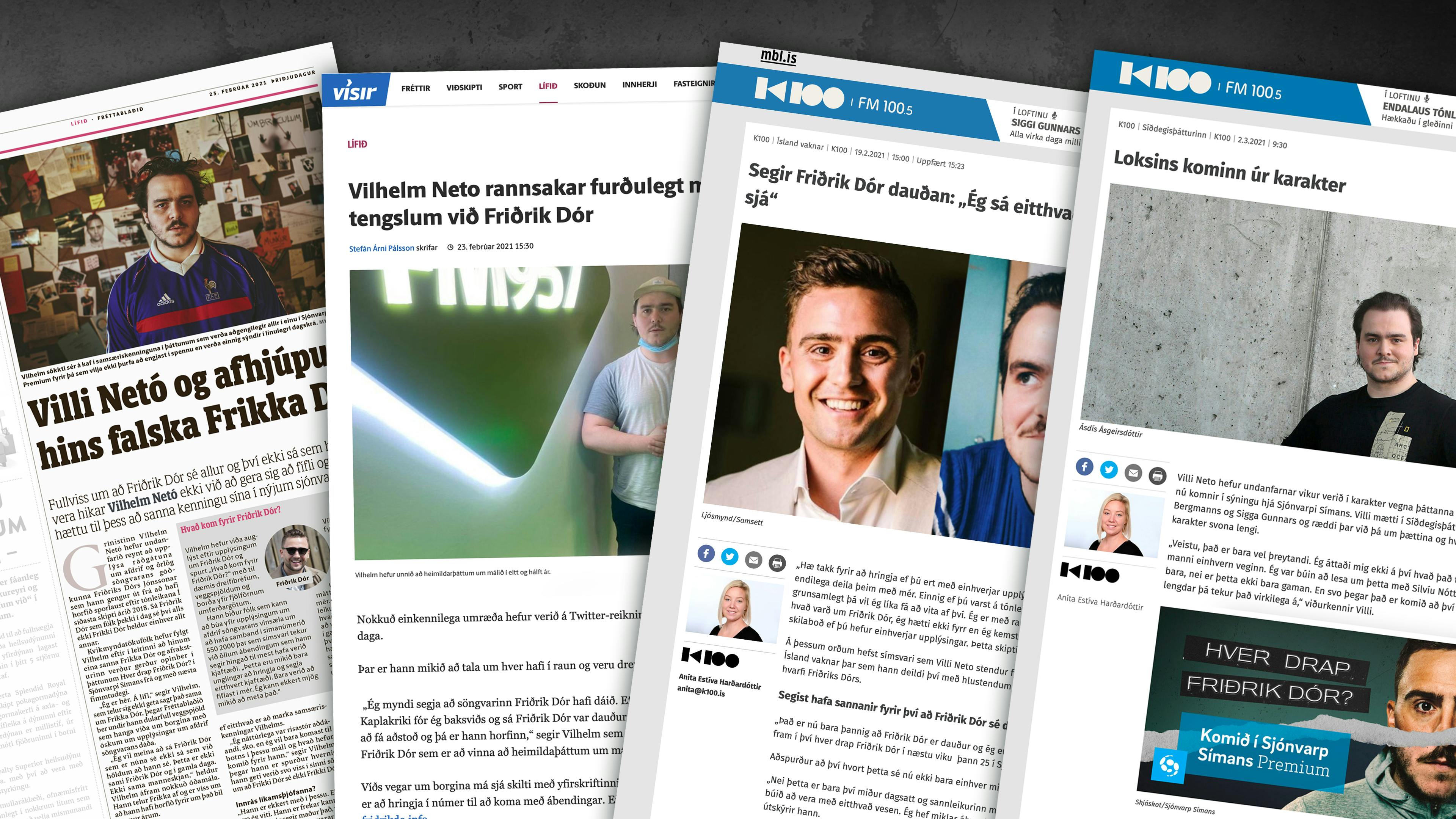 Söguhetjur þáttanna „Hver drap Frikka Dór?”, í Sjónvarpi Símans Premium, koma fram undir eigin nafni og ekki er ljóst hvort um heimildarmynd, spennu- eða gamanþátt er að ræða. Í PR hluta markaðsherferðar þáttanna var unnið með sömu bjögun á raunveruleikanum. Um nokkura vikna skeið hegðaði Villi Neto sér á sama undarlega hátt og í þáttununum, bæði í raunheimum og á samfélagsmiðlum, og þótti sumum af aðstandenda hans hans nóg um.