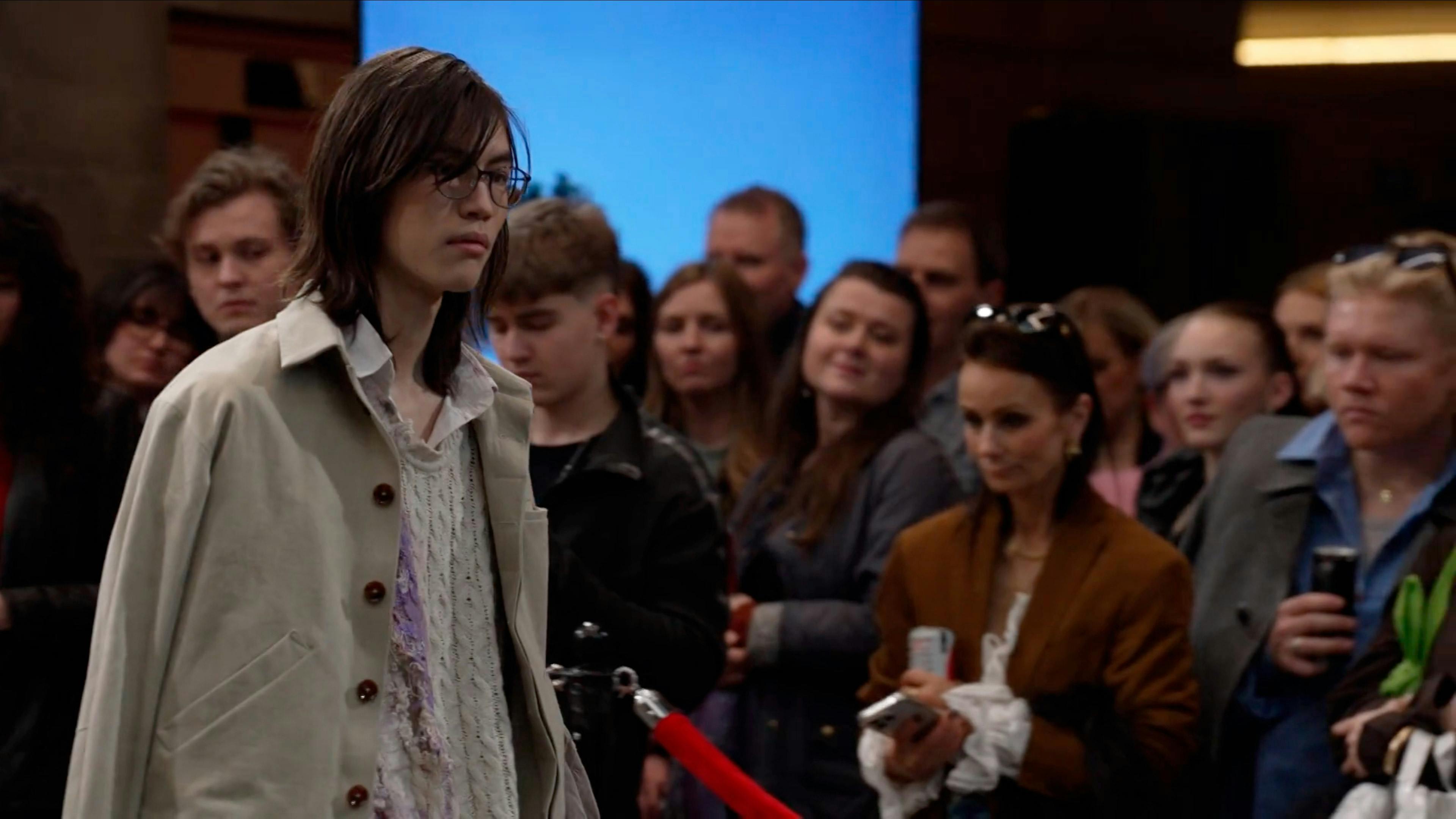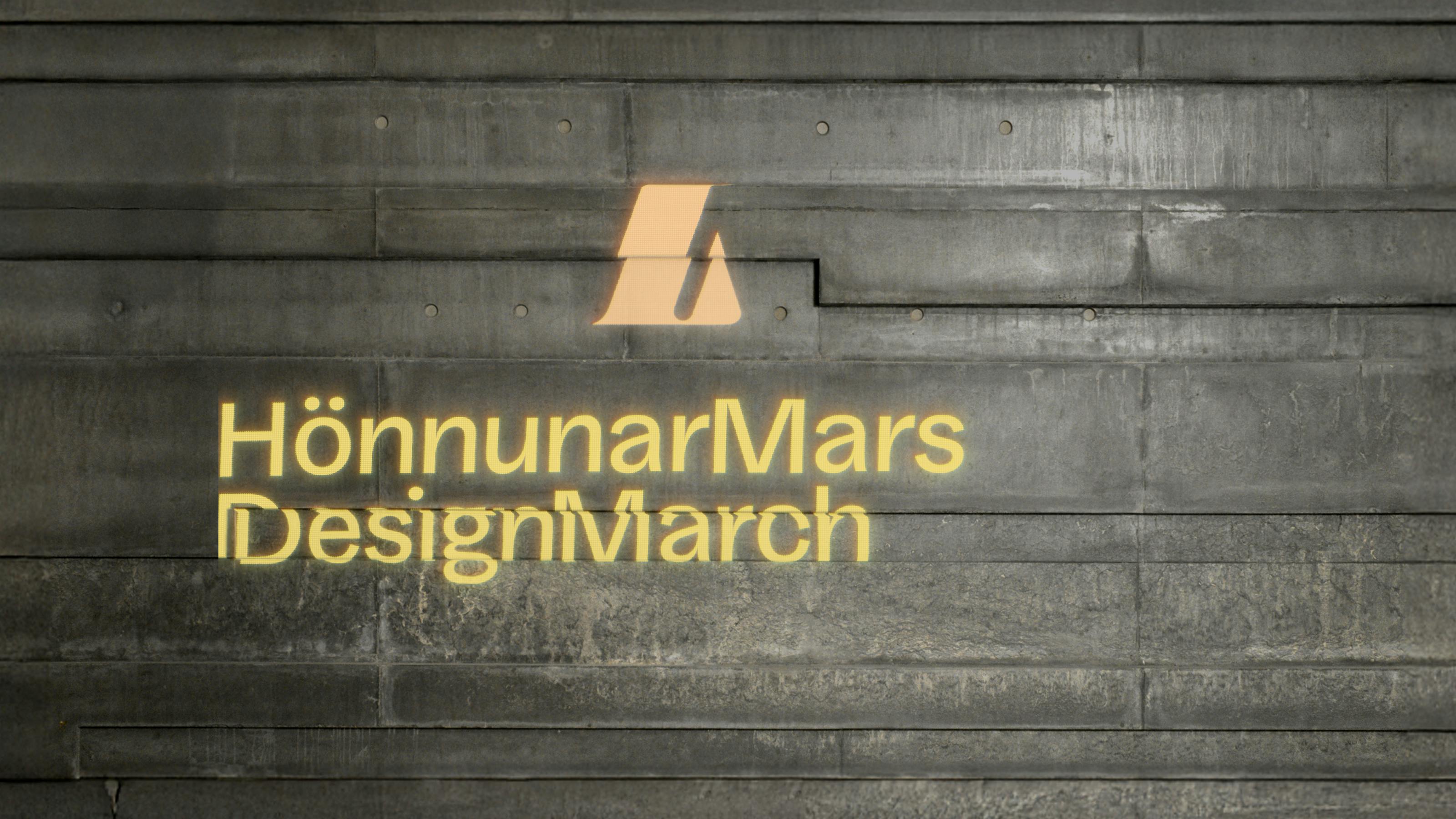 Þar sem myndefnið var tekið upp í höfuðstöðvum Landsbankans við Reykjastræti, var tilvalið að leyfa merki HönnunarMars að eiga sjónrænt samtal við fagurlega steypta veggi byggingarinnar. Merkið ferðaðist eftir flötunum, tók á sig dýpt og áferð steypunnar og skapaði lifandi samspil við merki Landsbankans — sem óneitanlega kallar fram notalegar DVD-minningar.