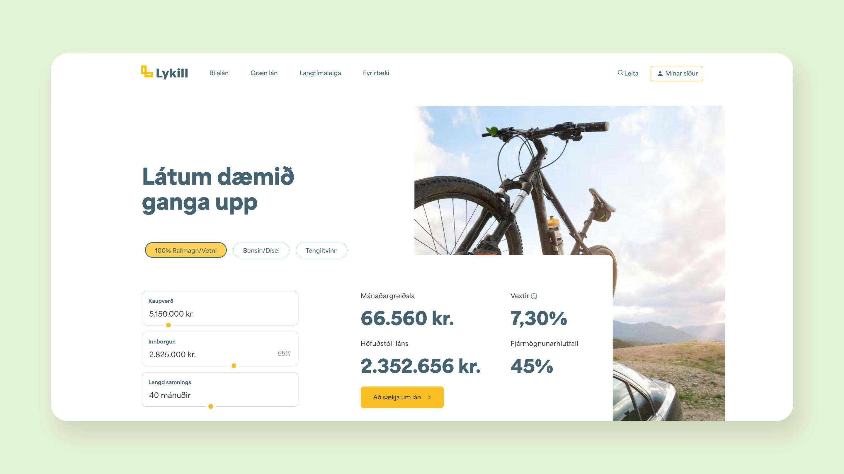 Það getur verið flókið að fjármagna draumabílinn. Við réðumst í það með Lykli að gera ferlið eins skýrt og aðgengilegt og hægt er með nýrri heimasíðu. Ný ásýnd og notendavænt viðmót hjálpar Lykli að leiða saman vélar og venjulegt fólk með stóra drauma.