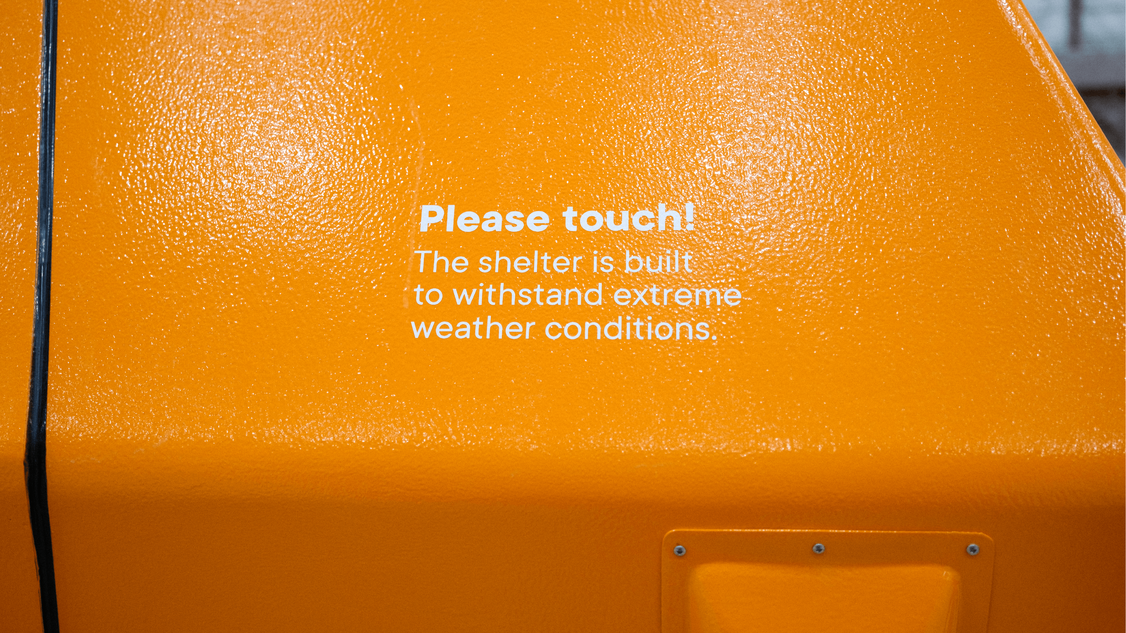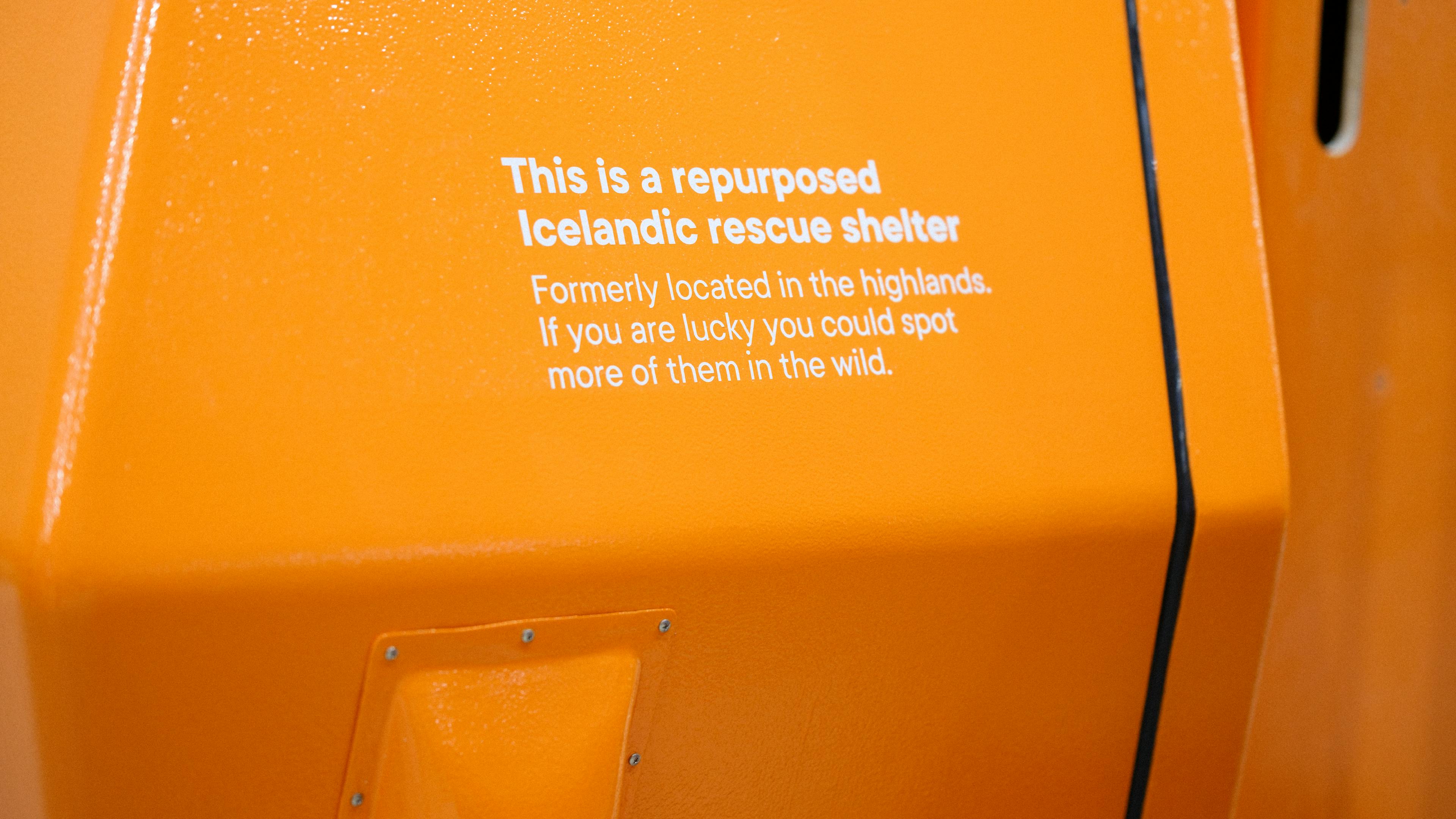 Krúnudjásnið í verkefninu er neyðarskýli sem sótt var vestur á firði og sagað í sundur af bátasmiðjunni Trefjum í Hafnarfirði. Skýlið er íslensk hönnun og endurnýting er í takt við áherslur um hringrásarhagkerfið. Skýlið var útbúið með skjá sem sýndi myndefni frá starfi björgunarsveitanna og beindi gestum á styrktarsíðu verkefnisins með QR kóða