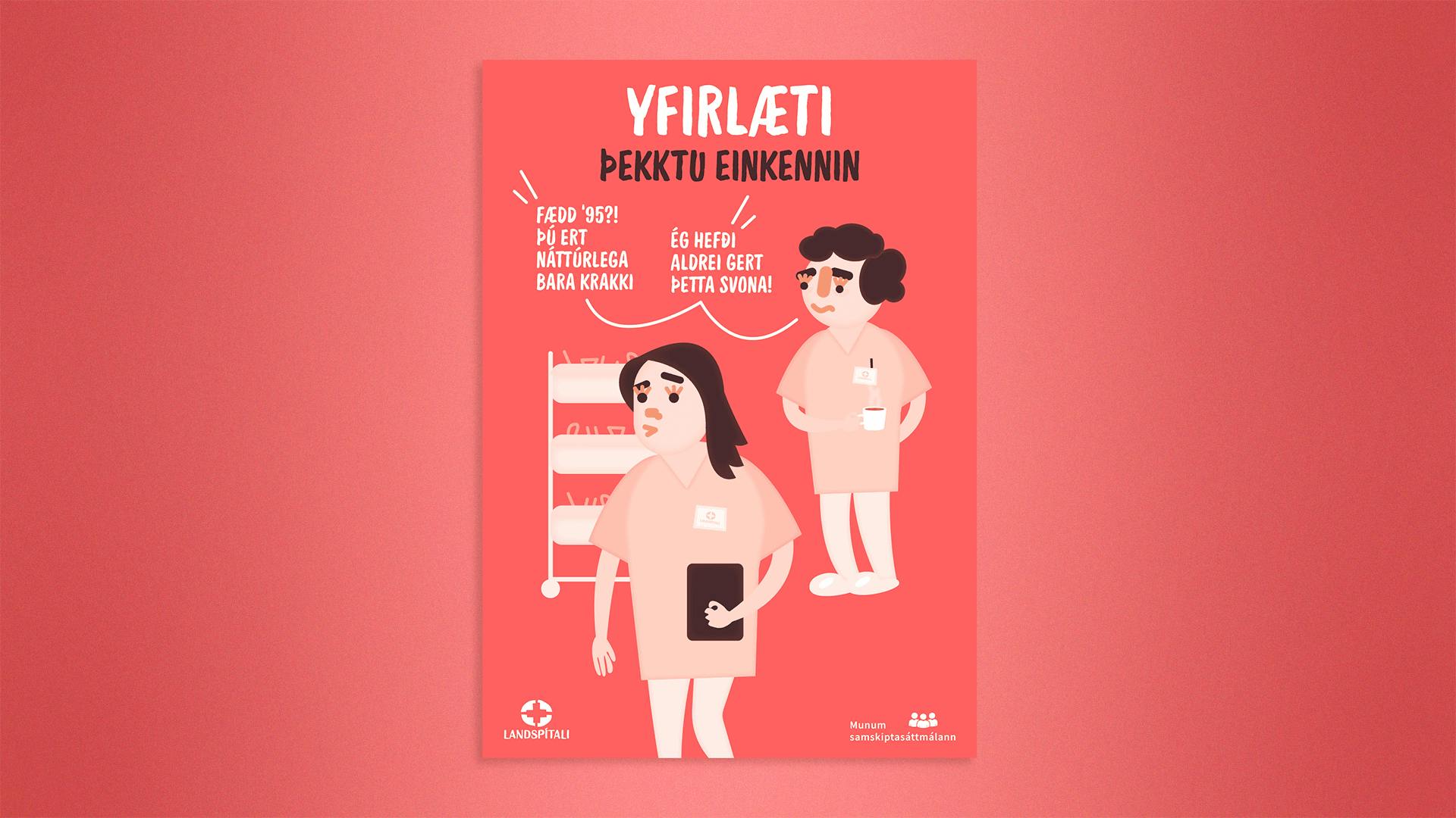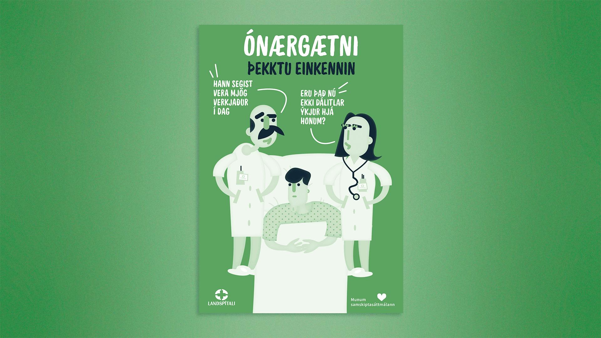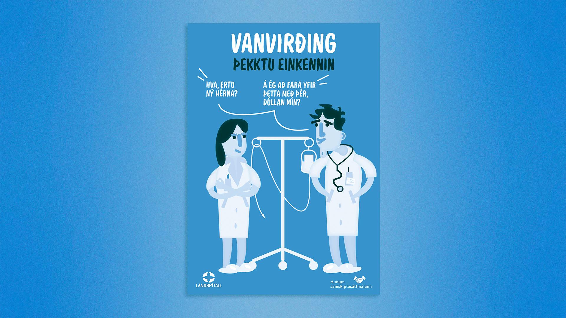 Haustið 2018 innleiddi Landspítalinn nýjan samskiptasáttmála. Sáttmálinn var metnaðarfullur og víðfeðmur en fyrir vikið vaknaði þörf á að impra á aðalatriðunum með hnitmiðuðum hætti. Úr varð að við unnum veggspjöld prýdd teiknimyndafígúrum til að draga fram kjarna málsins. Og jafnvel kalla fram bros í leiðinni.