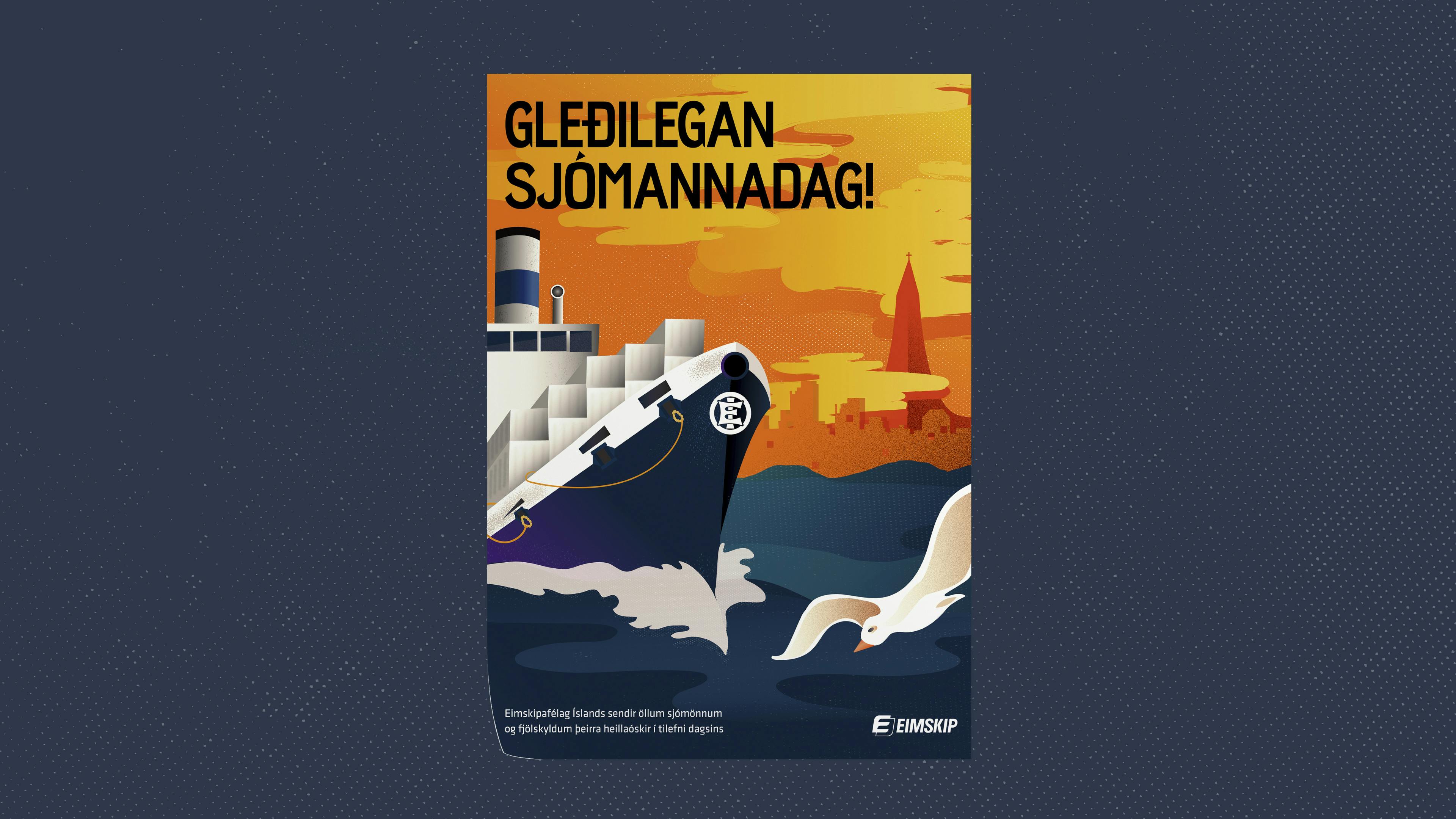 Það hefur lengi verið siður Eimskips að senda sjómönnum og fjölskyldum þeirra kveðju á sjómannadaginn. Fyrir kveðju ársins 2019 leituðum við á mið fortíðar og sóttum innblástur í dagatal Eimskipafélagsins frá 1930 svo að úr varð þetta laglega plakat. Og blésum lífi í gamalt letur.