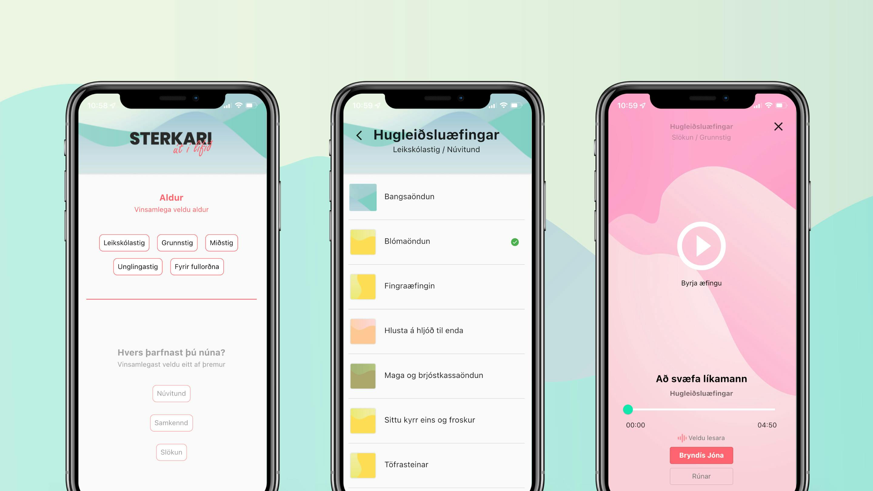 Sterkari út í lífið appið inniheldur fjölda æfinga tengdum núvitund, samkennd og slökun fyrir fólk á öllum aldri. Í hönnun appsins lögðum við áherslu á mjúkar línur og ljósa liti til að tryggja aðgengilegt og vinalegt viðmót. Tvist er stoltur samstarfsaðili verkefnisins Sterkari út í lífið en markmið þess er að auka aðgengi foreldra að efni sem styrkir sjálfsmynd barna og unglinga.