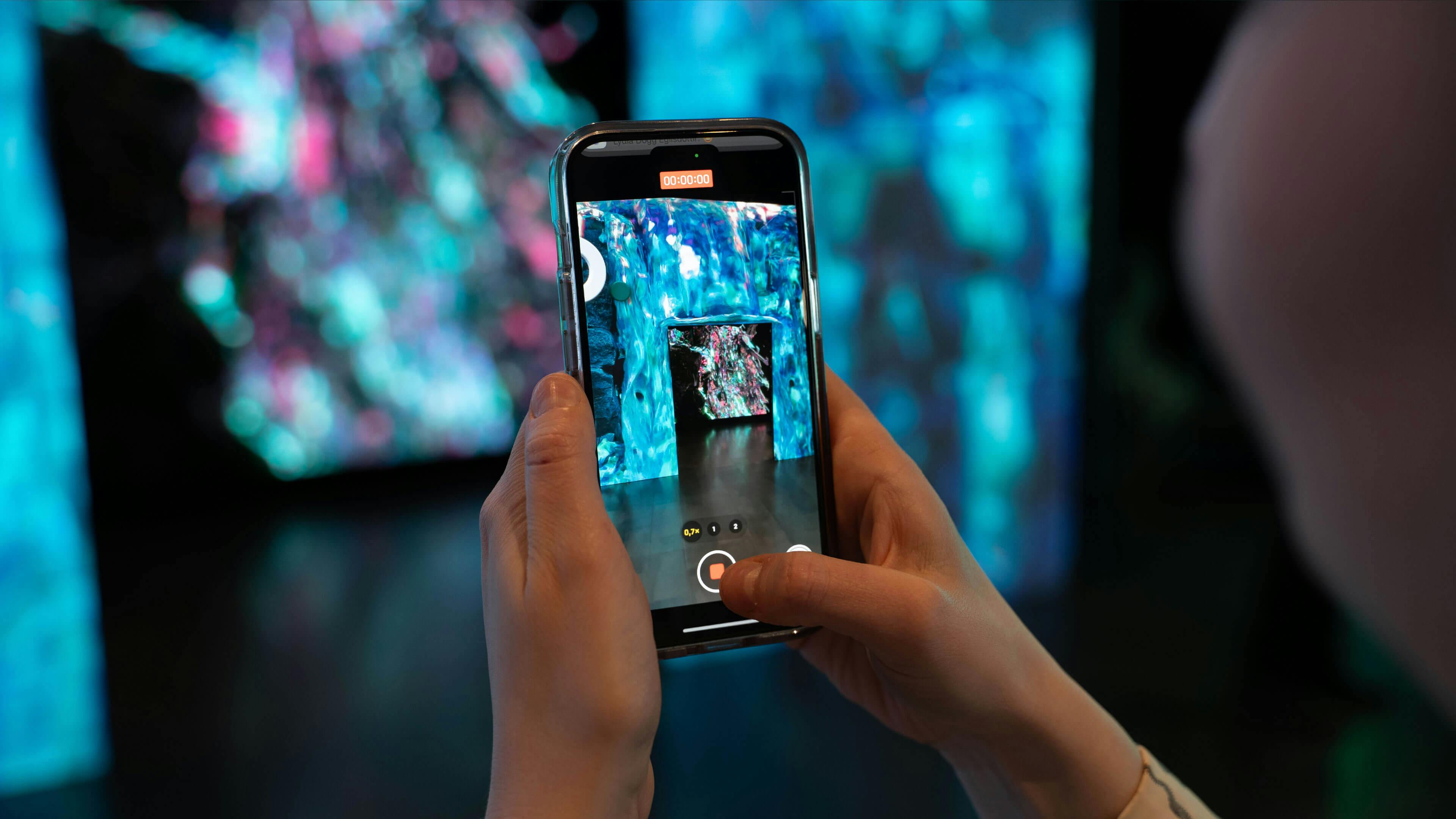 Sýningarbás Origo á UT messunni var stafrænt listaverk sem var unnið með þrívíddarhönnuðinum og listakonunni Maríu Guðjohnsen.