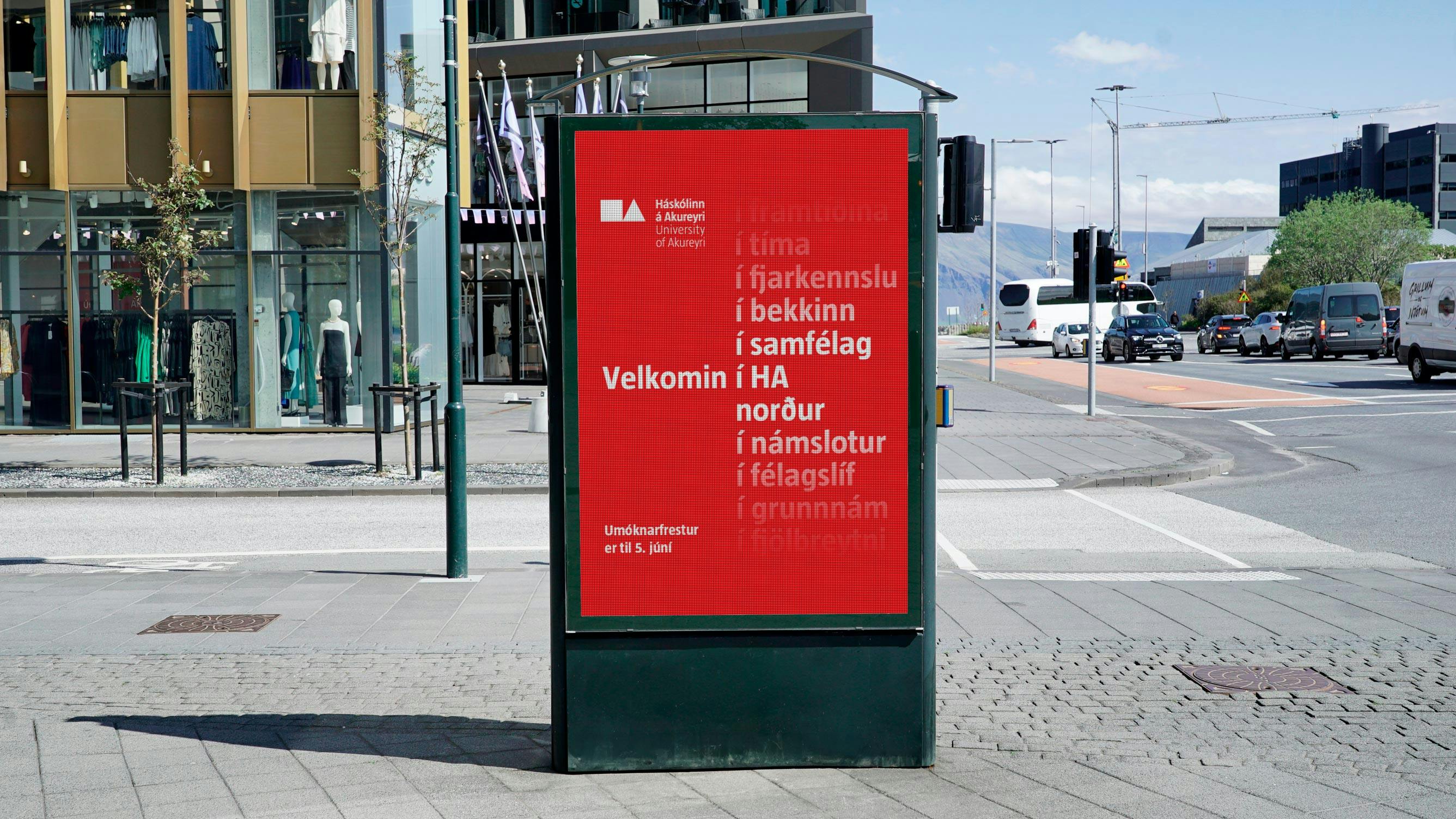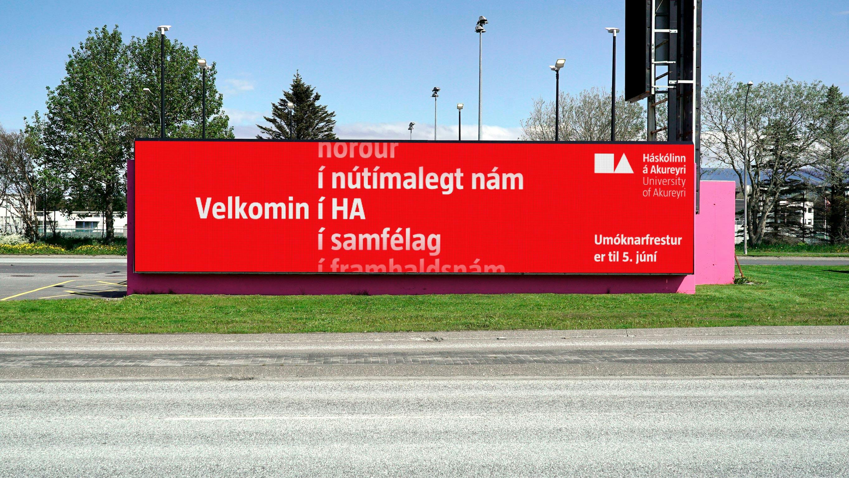 Rauði liturinn og hvítu myndmerkin gefa vörumerki Háskólans á Akureyri mikla sérstöðu. Áhersla var lögð á að draga þessa myndrænu sérstöðu fram og gera hana áberandi.